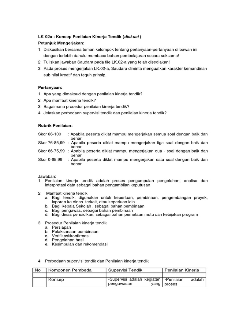 Aspek ini sangat penting guna menghasilkan pedoman dalam melakukan penilaian atas capaian yang. Berikut daftar pertanyaan dan jawaban seputar penilaian kinerja guru (pkg) dan penilaian prestasi kerja (ppk): Pertanyaan dan jawaban seputar penilaian kinerja guru pkg dan penilaian prestasi kerja ppk dadang jsn / pertama. Penilaian kinerja dilakukan untuk memberi tahu karyawan apa yang diharapkan. Strategi penilaian kinerja juga harus melakukan perbaikan pada mekanisme evaluasi kinerja.